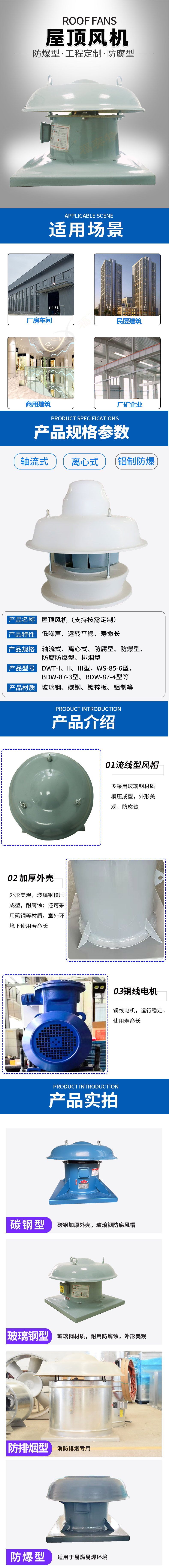 DWT屋頂(dǐng)風機風量大、壓(yā)力比離心風機低。該風機具有噪聲低、重量(liàng)輕(qīng)、運轉平穩、效率(lǜ)高(gāo)、防腐性能好(hǎo)等特點。適用於石油(yóu)、化工、紡織、冶金等機(jī)械廠房、倉庫建築物的室內通風換氣。